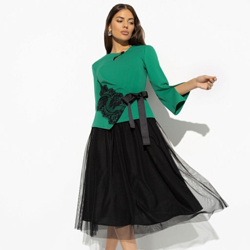 Костюм с юбкой из сетки на подкладе Больше чем стиль (2 в 1 green)