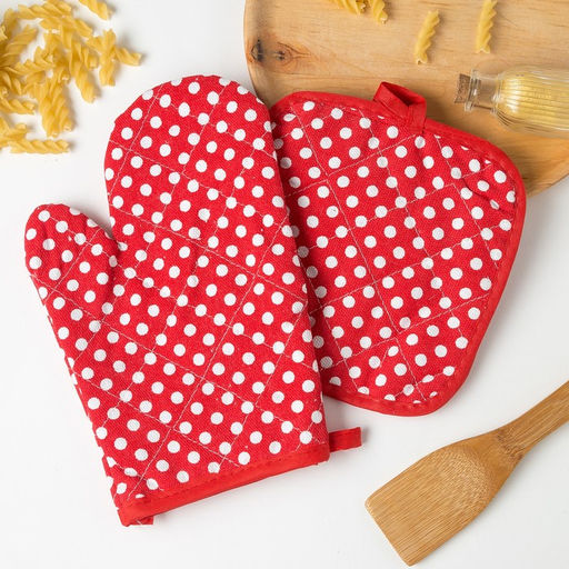 Кухонный набор 2 прихватки Доляна Горох , прихватка 17х17 см, рукавица 26х16 см, 100% п/э
