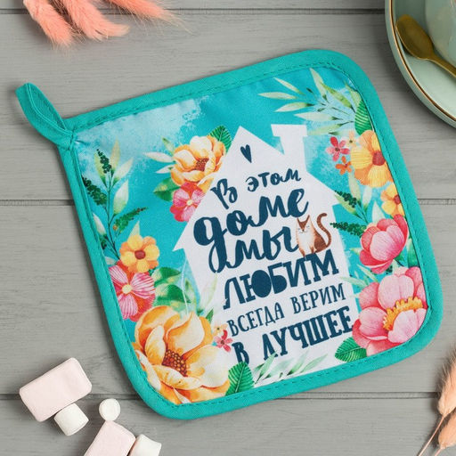 Прихватка "Любимый дом"17х17см,35% х/л,65% п/э,ватин 250г/м2