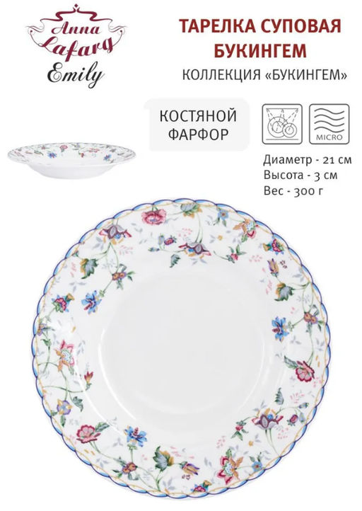 Тарелка суповая Букингем, 21 см, 0,3 л