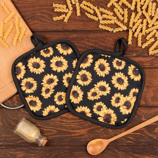 Кухонный набор Доляна Подсолнухи, прихватка 17*17 см - 2 шт,100% п/э
