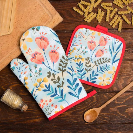 Кухонный набор Доляна Тюльпаны, прихватка 17*17 см, рукавица 26*16 см,100% п/э