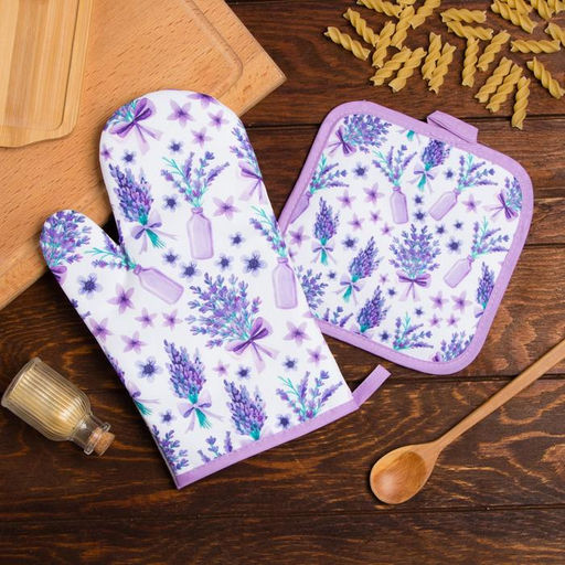 Кухонный набор Доляна Романтика, прихватка 17*17 см, рукавица 26*16 см,100% п/э