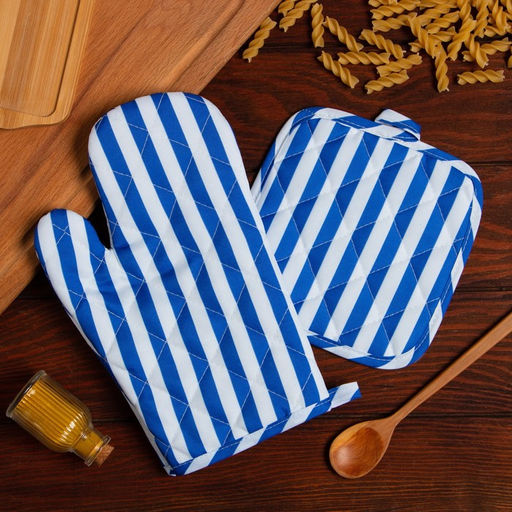 Кухонный набор Доляна цвет синий прихватка 17х17 см, варежка 26х16 см, 100% п/э