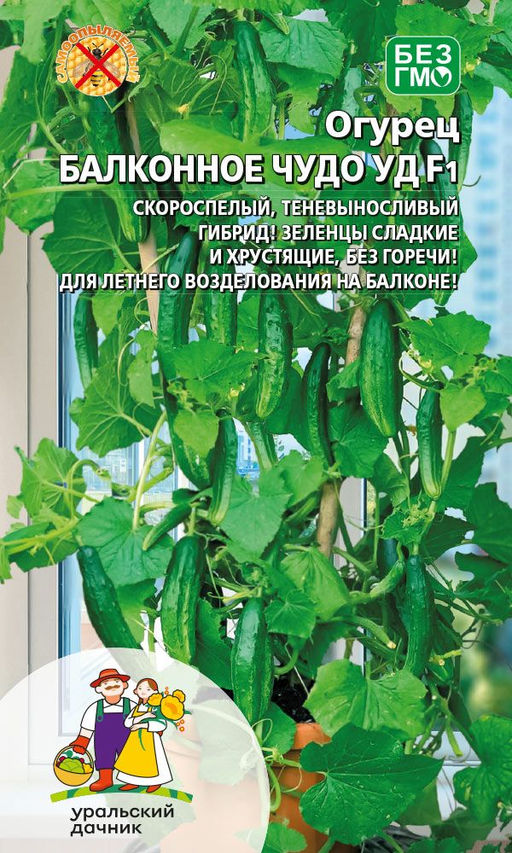Огурец БАЛКОННОЕ ЧУДО УД F1 Скороспелый, теневыносливый гибрид! Зеленцы сладкие и хрустящие, без горечи! Для летнего возделывания на балконе!
