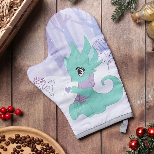 Варежка-прихватка Доляна "Чаепитие в лесу" 20х28 см, 35% хл, 65% пэ, ватин 250 г/м2