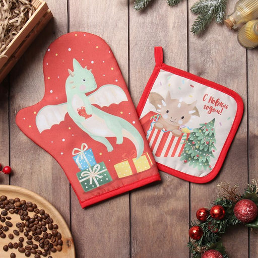 Набор кух. Доляна "Подарок": варежка 20х28 см, прихватка 17х17 см, 35% хл, 65% пэ