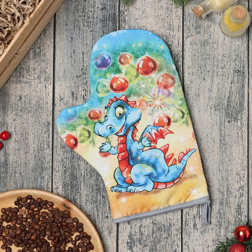 Варежка-прихватка "Новогодние игрушки" 20х28 см, 35% хл, 65% пэ, ватин 250 г/м2