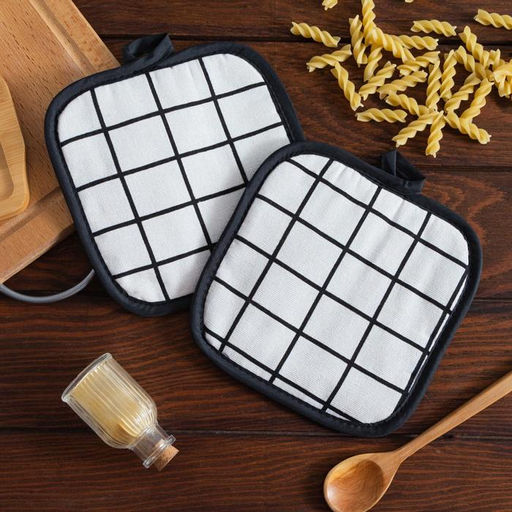 Кухонный набор (2 предмета) Доляна Клетка, цвет белый, прихватка 17х17 см - 2 шт, 100% п/э