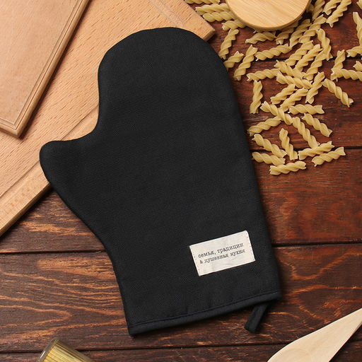 Варежка-прихватка Доляна "Душевная кухня" цв.черный 20х28см, рогожка, 100% х/л