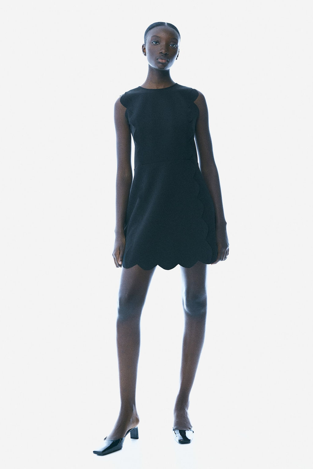 Scalloped twill dress
