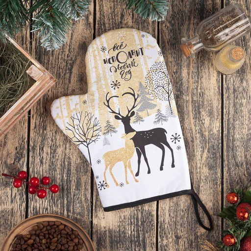 Варежка-прихватка Новогодние олени 20х28см,саржа, 100% х/л, ватин 250г/м2