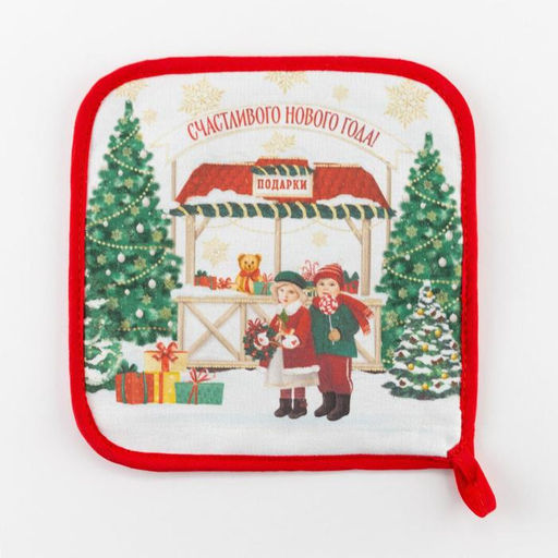 Прихватка "Новогодняя ярмарка" 19х19см, саржа, 100% х/л,ватин 250г/м2