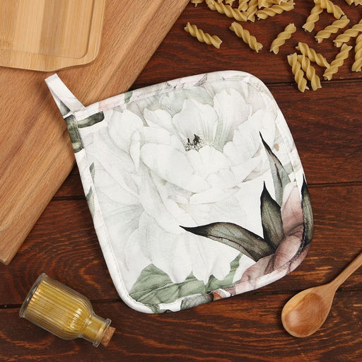 Прихватка "Этель" Пионы 19х19см,100% х/л, ватин 250г/м2 (двухсторонняя)