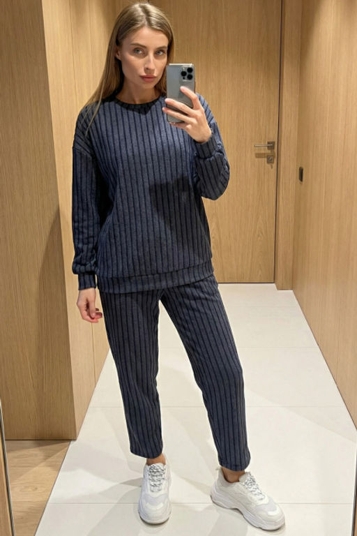 Костюм трикотажный оверсайз с брюками серый