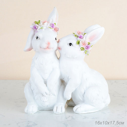 Цена за 2 шт. Фигурка Кролики с цветами 16х10х17 см / TX-4 /уп 48/Пасха