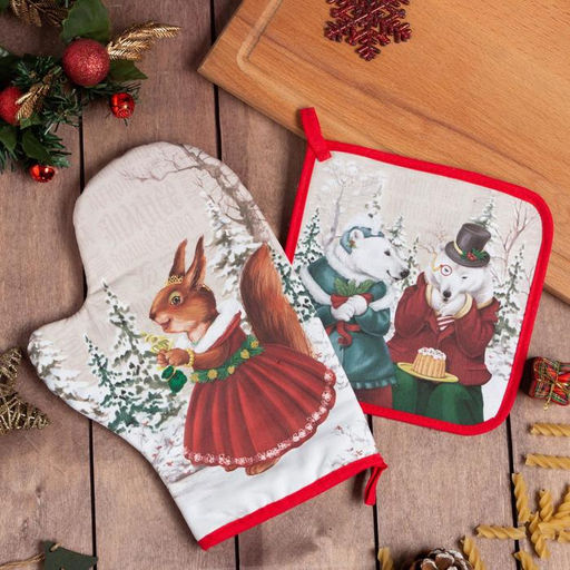 Набор кухонный Зимнее волшебство варежка-прих.20х28см, прихватка 19х19,100% хл,ватин 250г/м2