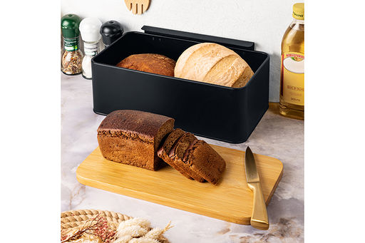 Хлебница 33*13*18 см "Черная" с бамбуковой крышкой-доской