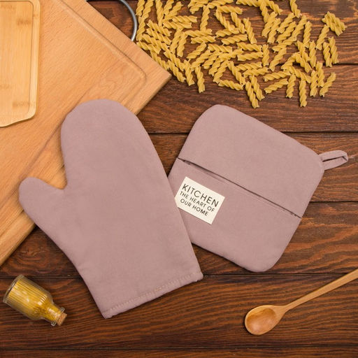 Кухонный набор Этель Kitchen, цвет сиреневый, варежка-прихватка 18х29 см, прихватка 19х19 см