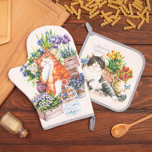 Набор кухонный "Любимая бабушка" варежка-прихватка 20х28см, прихватка 19х19см, 100% хлопок