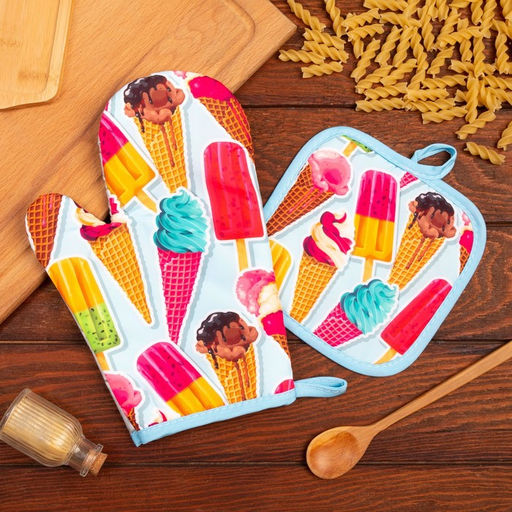 Кухонный набор 2 прихватки Этель Сладости , прихватка 17х17 см, варежка 24х16 см, 100% п/э