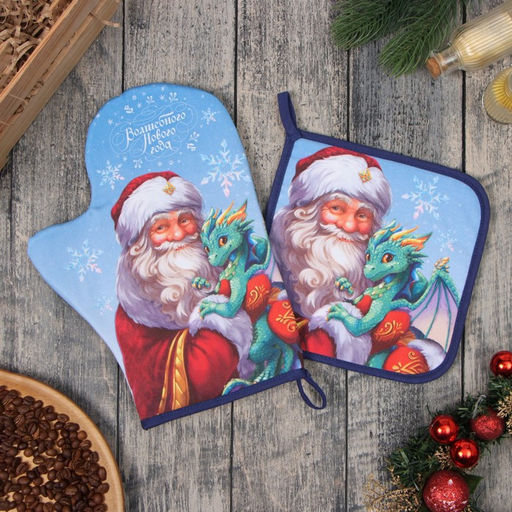 Набор кух. Этель "Сказочный гость": прихватка 19х19 см, варежка-прихватка 20х28 см, 100% хл