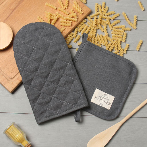 Набор кух. Этель ECO grey: варежка 15х28см, прихватка 19х19см, 100% лён, 245 г/м2