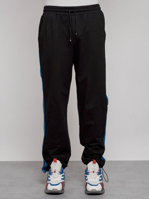 Широкие спортивные штаны трикотажные мужские черного цвета 12903Ch