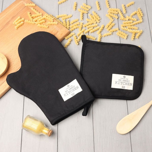 Набор кух. Этель "Kitchen" цв.черный, варежка-прихватка 20х28см, прихватка 19х19см,100% хл