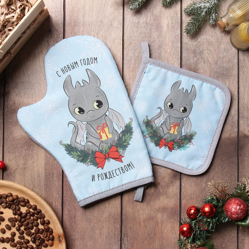Набор кух. Доляна "Радостный дракон": варежка 20х28 см, прихватка 17х17 см, 35% хл, 65% пэ