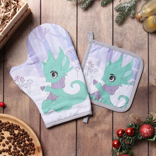 Набор кух. Доляна "Чаепитие в лесу": варежка 20х28 см, прихватка 17х17 см, 35% хл, 65% пэ
