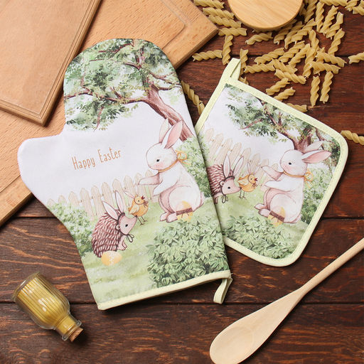 Набор кух. Доляна "Зверьки": варежка 20х28 см, прихватка 17х17 см, 35% хл, 65% пэ