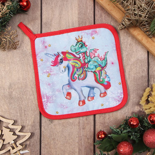 Прихватка "Дракон и единорожка" 17х17 см, 35% хл, 65% пэ, ватин 250 г/м2