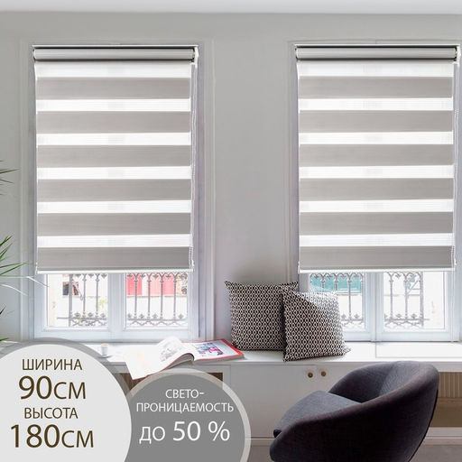 Штора рулонная День-ночь, 90180 см (с учётом креплений 3,5 см), цвет серый