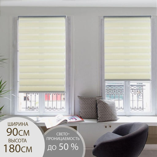Штора рулонная День-ночь, 90180 см (с учётом креплений 3,5 см), цвет бежевый