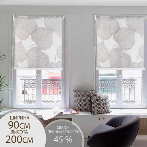 Штора рулонная Листья, 90200 см (с учётом креплений 3,5 см), цвет коричневый