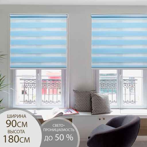 Штора рулонная День-ночь, 90180 см (с учётом креплений 3,5 см), цвет голубой