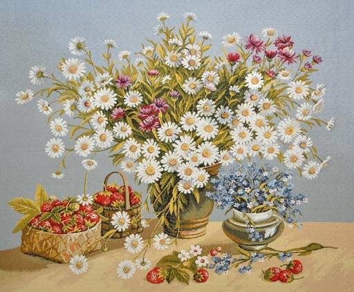 Букет и корзина клубники-гобеленовый купон 60х70 см