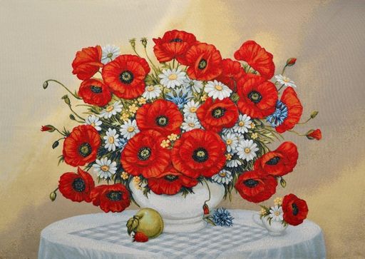 Ваза с маками и ромашками- гобеленовый купон