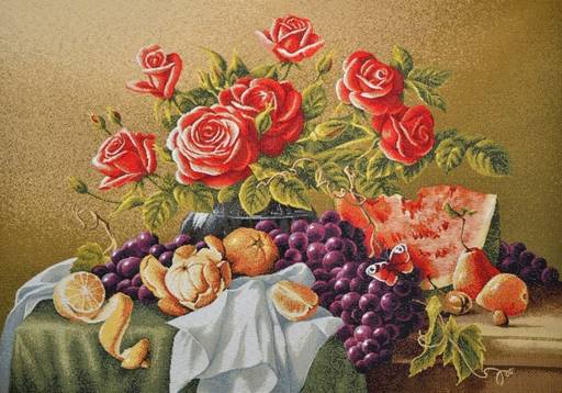 Натюрморт с розами-гобеленовый купон