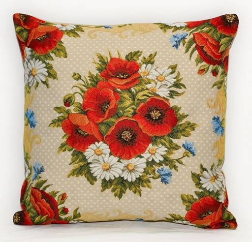 Алые маки и ромашки-гобеленовая наволочка
