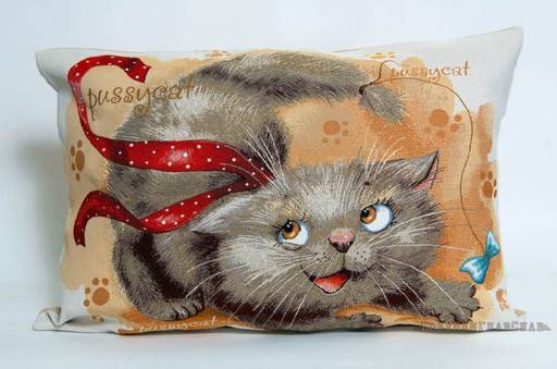 Баловни: котенок с ленточкой - гобеленовая наволочка 50х70 см