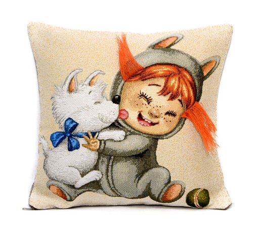 Василиса со щенком - гобеленовая наволочка