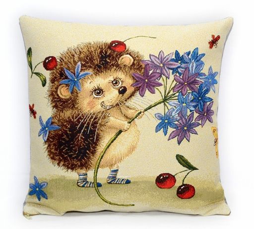 Веселый ёжик Цветочек- гобеленовая наволочка 45х45см