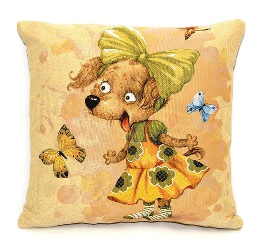 ГС Девочка в бабочках-гобеленовая наволочка 32х32 см