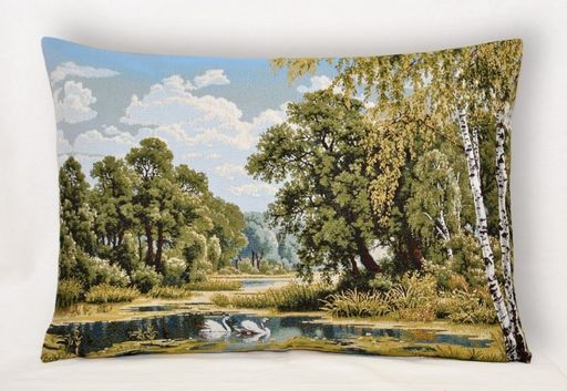 Пейзаж с лебедями- гобеленовая наволочка