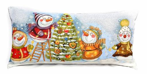 Снеговики у ёлки - гобеленовая наволочка 35х70 см