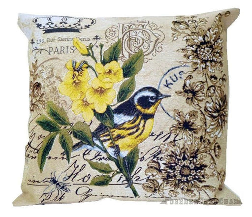 Марки: желтая птичка корона- гобеленовая наволочка
