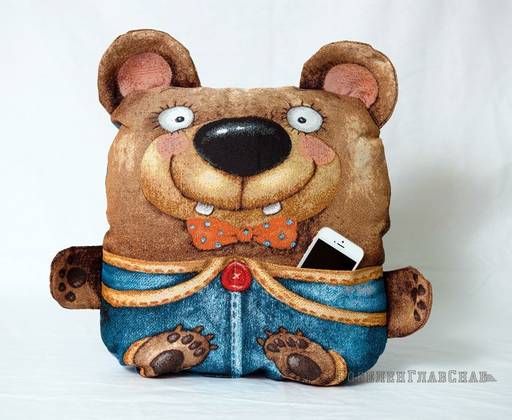 Мишка карман - подушка-игрушка гобеленовая