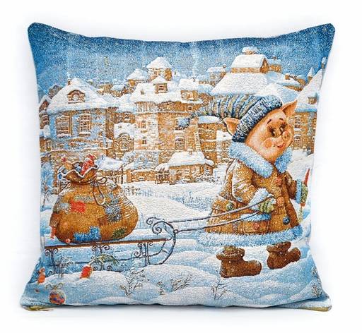 Предпраздничный вечер свинка-гобеленовая наволочка